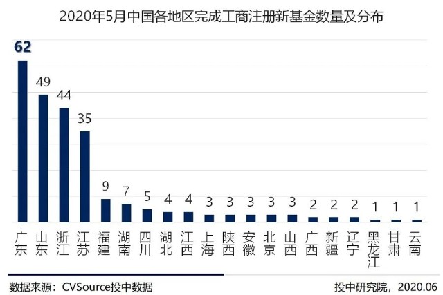 成立新基金(jīn)的(de)活躍度在地(dì)域上(shàng)有(yǒu)較明(míng)顯的(de)兩極分(fēn)化(huà),第一(yī)梯隊的(de)省市(shì)包括廣東(dōΩng)、山(shān)東(dōng)、浙江、江蘇四省,尤其廣東(dōng)省憑借政策扶持多(duō)次蟬聯新成立基金(jīn)Top1,而其他(tā)地(dì)區(q×ū)新成立基金(jīn)不(bù)足10支。