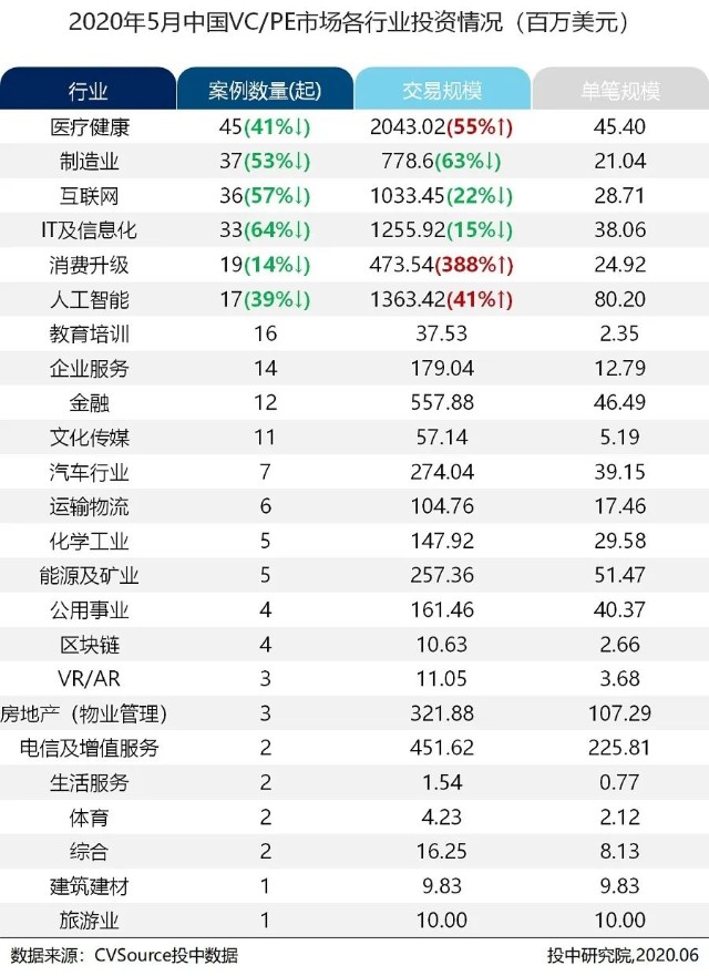 随著(zhe)3-4月(yuè)份國(guó)內(nèi)疫情得(de)到(dào)控制(zhì),VC/PE投資活躍經曆大(dà)幅反彈,但(dàn)增長(cháng)趨勢未能(néng)持續,2020年(nián)5月(yuè),投資活躍度開(kāi)始回落,案例數(shù)量環比減少(shǎo)23%,并且↕同比2019年(nián)尚有(yǒu)近(jìn)六成的(de)差距。