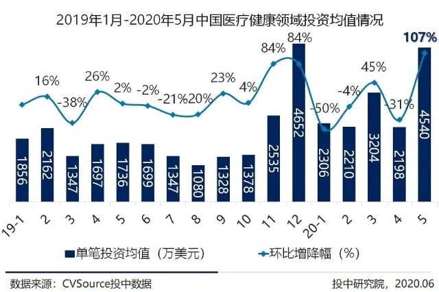 醫(yī)療健康領域原本就(jiù)是(shì)VC/PE市(shì)場(chǎng)的(de)投資熱(rè)點×,而今年(nián)的(de)疫情更是(shì)直接激發了(le)VC/PE機(jī)構的(de)投資熱(r¥è)情。2020年(nián)以來(lái),醫(yī)療健康領域單筆(bǐ)投資均值不(bù)下(xià)2000•萬美(měi)元,本月(yuè)更是(shì)攀升到(dào)4540萬美(měi)元,環比4月(yuè)增長(c≥háng)107%,同比驟增162%。
