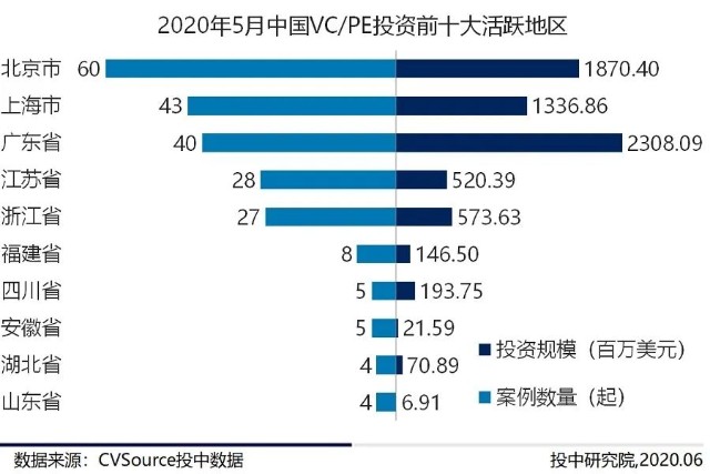 中國(guó)各地(dì)區(qū)VC/PE投資情況
