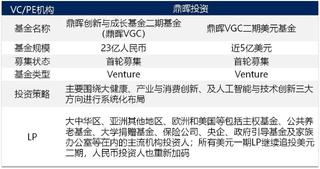 【鼎晖投資】鼎晖投資宣布鼎晖創新與成長(cháng)基金(jīn)二期完成了(le)23億元人(rén)民(mín)币首輪募集,同期鼎晖VGC二₹期美(měi)元募集也(yě)接近(jìn)5億美(měi)元。此次新基金(jīn)的(de)募資,&是(shì)自(zì)鼎晖VGC2016年(nián)一(yī)期50億基金(jīn)募集完成後的(de)第二次市≠(shì)場(chǎng)募集。