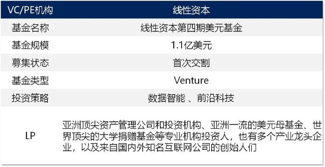 【線性資本】線性資本完成第四期美(měi)元基金(jīn)募集的(de)首次交割,金(jīn)額為(wèi)1.1億美(měi)元。這(zhè)期基金(j€īn)得(de)到(dào)了(le)老(lǎo)投資人(rén)的(de)持續加碼支持,也(yě)逆勢獲得(de)了(le)世界頂級新投資人(rén)的(de)青睐。