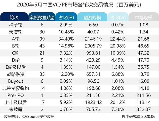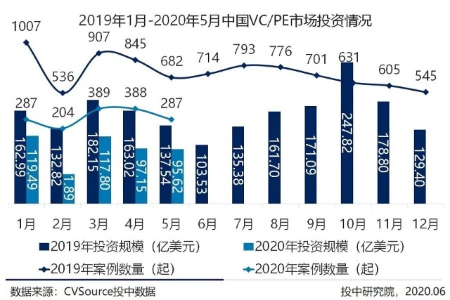 3月(yuè)開(kāi)始進入後疫情時(shí)代,中國(guó)VC/PE投資市(shì)場(chǎng)活躍度有(yǒu)所反彈,但(dàn)由于募資動力不(bù)Ω足,優質項目稀缺,VC/PE投資未能(néng)一(yī)直保持回升态勢; 2020年(nián)5月(&yuè),投資案例數(shù)量287起,環比回落26%,同比減少(shǎo)58%;投資規模95.62億美(měi)$元,環比基本持平,同比減少(shǎo)30%。